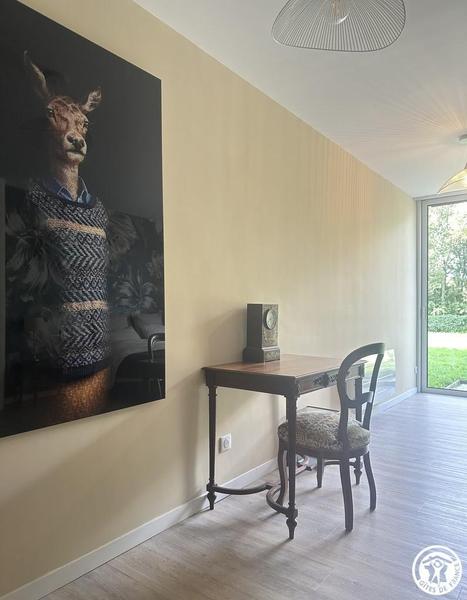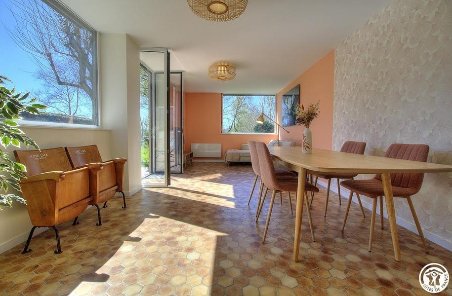Pensée pour accueillir jusqu’à 6 personnes, cette maison de vacances offre un savant mélange de décoration contemporaine et de touches vintage. Vous pourrez vous prélasser sur une grande terrasse en bois, idéale pour les repas en plein air ou simplement pour profiter de la douceur de vivre locale. Le tout s’ouvre sur un jardin non clos, verdoyant, propice à la détente.