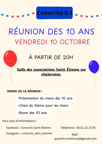 Venez participer à la réunion des 10 ans des conscrits de Saint Etienne sur Chalaronne.